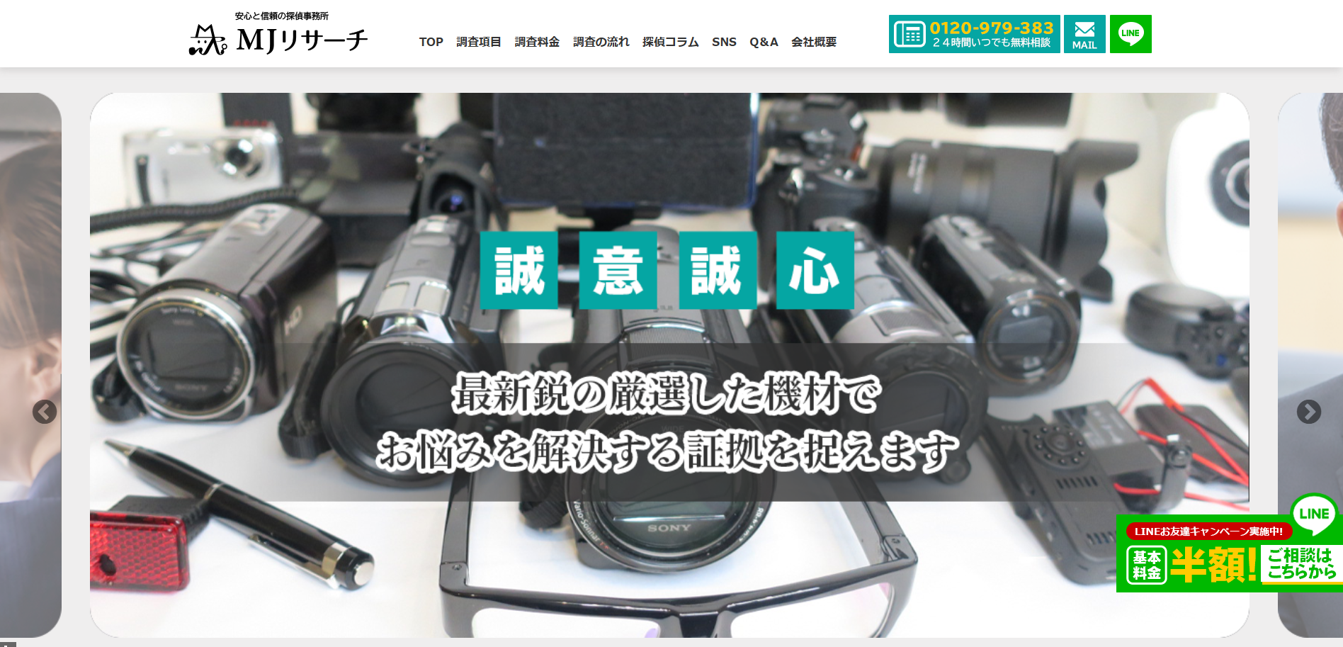MJリサーチは、浮気調査を中心に人探しや素行調査などを行う探偵事務所です。